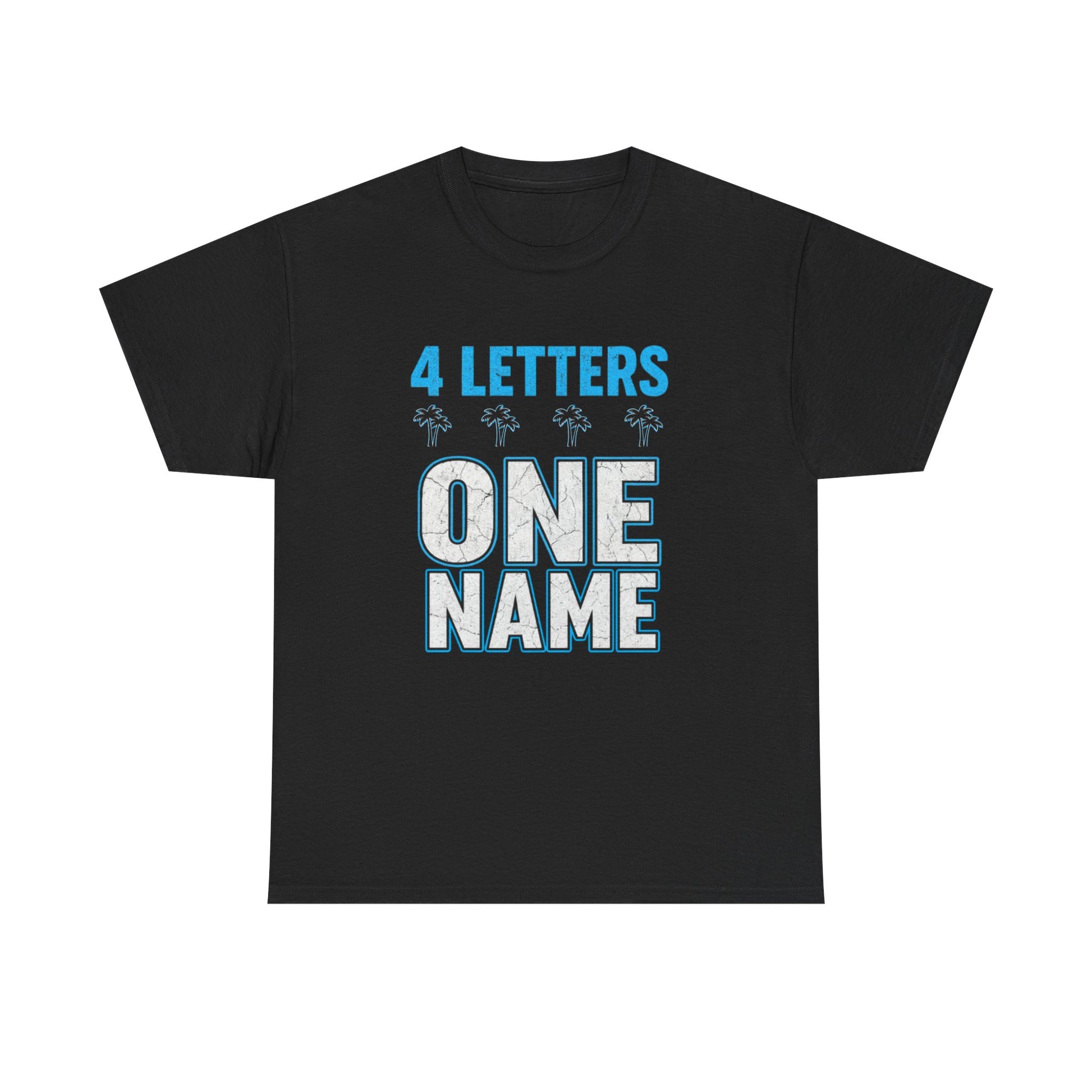 A laid-back, statement tee made for people who wear their name with pride. This classic crew-neck shirt has a bold front graphic that reads “4 LETTERS / ONE NAME” and a clean back print with a four-letter name and subtle palm-tree accents — it’s the kind of shirt that reads loud and easy while staying comfortably familiar. The medium-weight cotton feels steady on the skin and holds prints crisply. Wear it to casual meetups, weekend errands, or afternoons at the beach bar; it layers well under a flannel or stands alone with jeans. The tear-away label keeps the neck itch-free, and the reinforced shoulder tape keeps the silhouette sharp wash after wash.