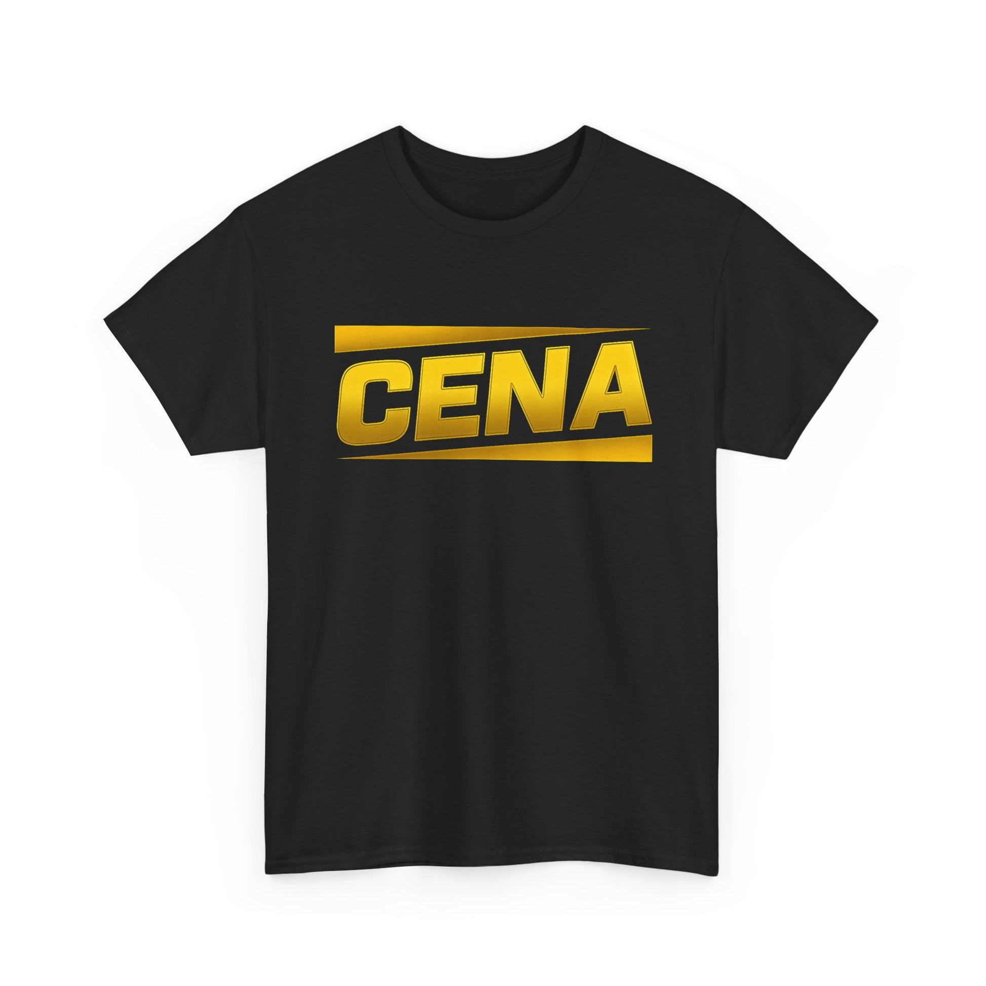 Bold, unapologetic, and retro — this tee carries a glossy gold logo across the chest that reads “CENA,” evoking old-school sports branding and late-night arena energy. The soft, medium-weight cotton drapes comfortably while the ribbed collar and taped shoulders keep the silhouette neat after repeated wear. It’s the kind of shirt you reach for when you want to make a statement without saying a word: loud color, clean lines, and a slightly nostalgic sheen that catches the light. Wear it to a match, a meetup, or when you’re out chasing that rush of adrenaline — it blends into crowd energy and makes you feel confident and seen.