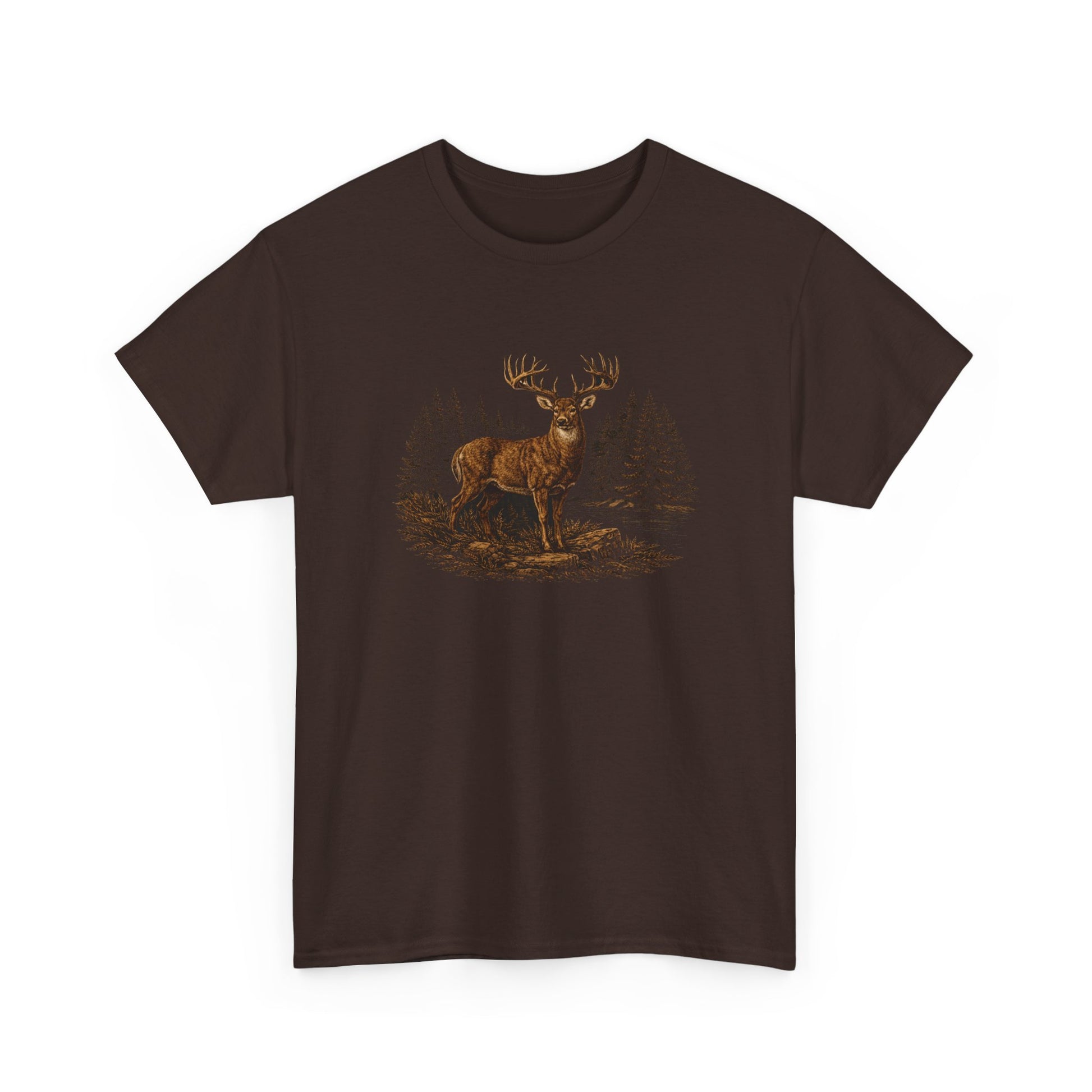 A soft, sturdy tee that feels like a quiet morning in the woods. The muted natural fabric and detailed stag illustration bring a calm, rustic energy — like stepping into a frost-bright clearing where pine needles hush your footsteps. Wear it on slow weekends, trailside coffee runs, or evenings by a backyard fire. The classic crew neck and relaxed cut sit comfortably under a flannel or on their own, while the tear-away label and resilient rib collar keep distractions to a minimum. This shirt settles into your rotation and keeps telling the same easy story every time you put it on.