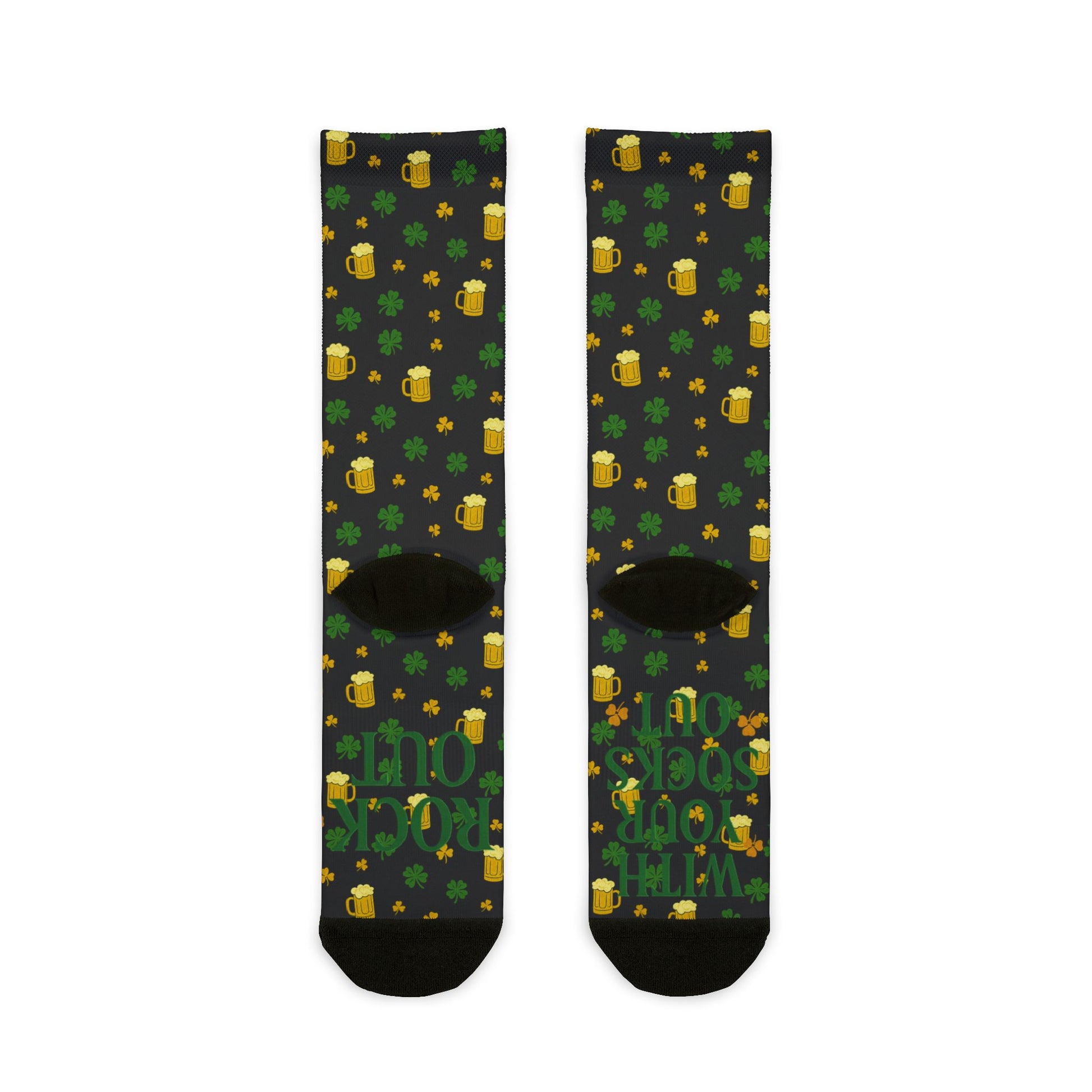 St. Patrick's Day Green Shamrocks & Beer Mug Pattern with 'Rock Out With Your Socks Out' Sublimination | Socks